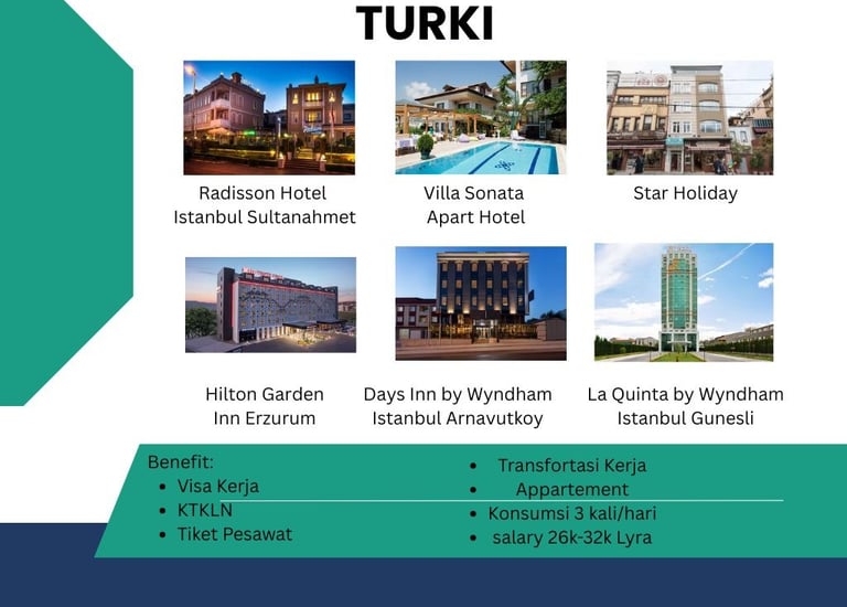 Penempatan di hotel bintang 4-5 turki