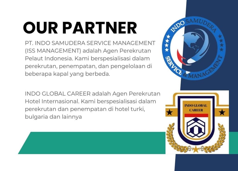 LKP Khansa Samudera adalah lembaga pendidikan dan pelatihan tenaga kerja luar negeri. Kami bekerjasama dengan T. INDO SAMUDERA SERVICE MANAGEMENT (ISS MANAGEMENT) yang telah berdiri sejak tahun 2008. Kami telah memberangkatkan sekitar 1000 awak kapal dan pekerja diluar negeri di beberapa kapal dan hotel yang berbeda.Kami berkomitmen melahirkan tenaga kerja profesional melalui program pelatihan bahasa dan keterampilan di bidang hospitality yang dirancang untuk memenuhi standar industri global.